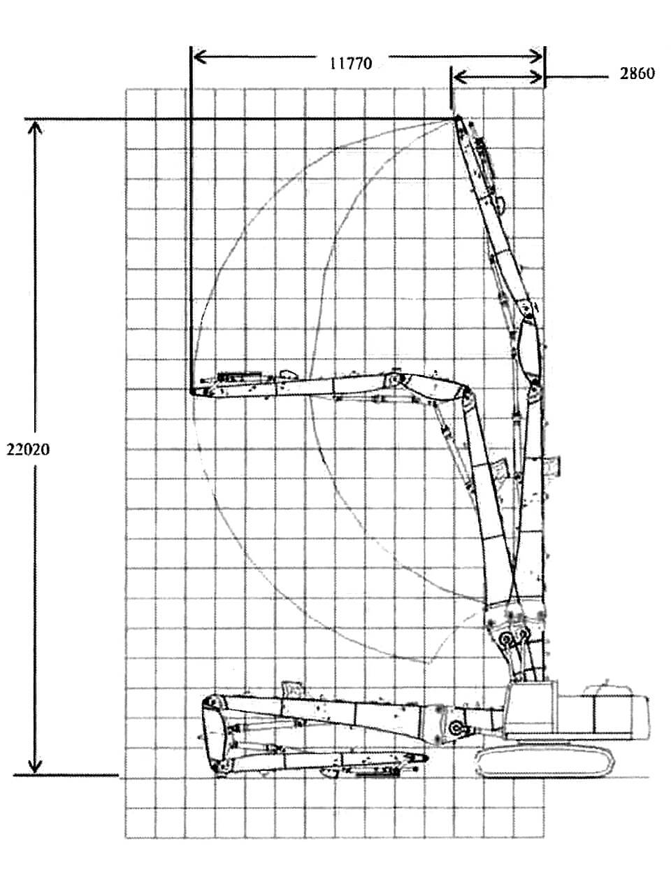 | 作業範囲 (アーム先端ピン位置) | 最大作業高さ mm | 22,020 | 12,400 |