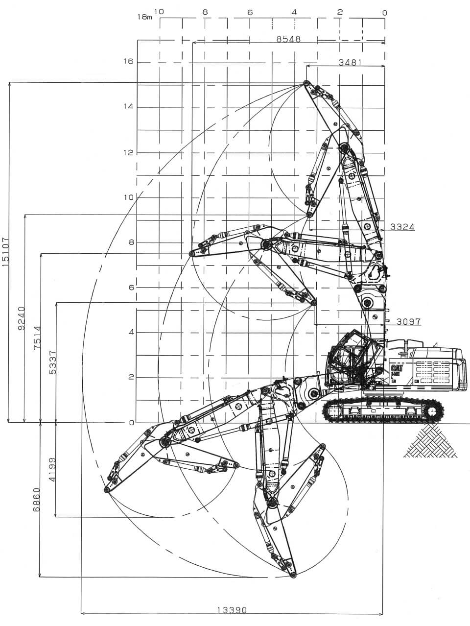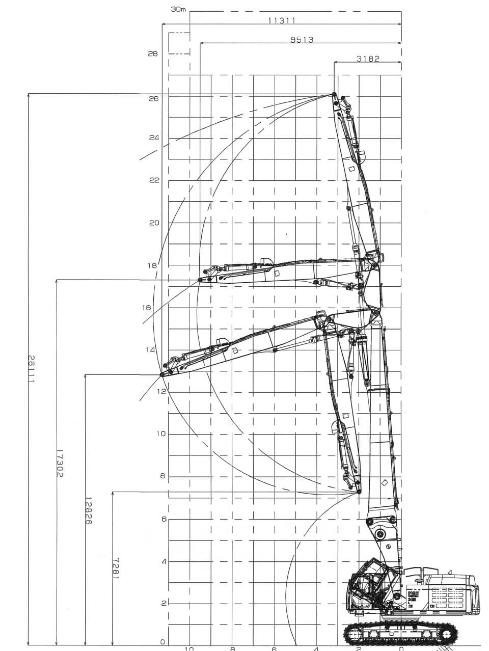 | 作業範囲 (アーム先端ピン位置) | 最大作業高さ mm | 26,111 | 14,370 |